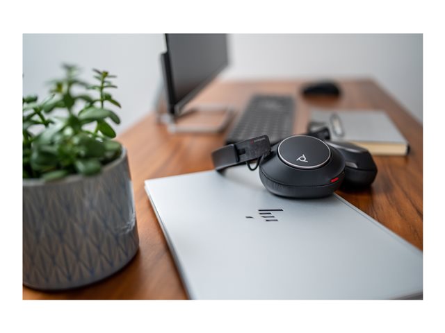 Voyager Surround 80 series - headset - fullstorlek - Bluetooth - trådlös - aktiv brusradering - USB-C via Bluetooth-adapter - svart - Certifierad för Microsoft Teams Open Office